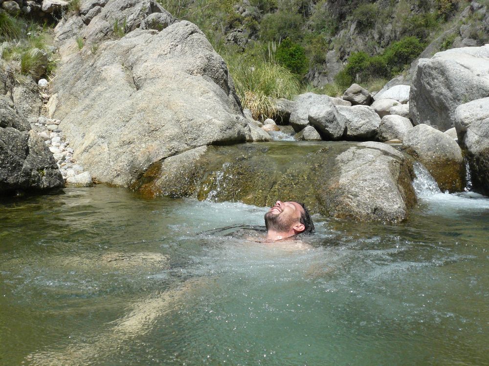 Je n'ai passé que trois nuits et deux jours à San Luis donc je n'ai pas pu découvrir grand chose de la ville, mais ce sont surtout ses alentours qui sont intéressants. San Luis est situé juste à côté des Sierras Grandes. Faute de temps, je n'ai fait qu'une excursion, à Salto de la Moneda. Je ne suis pas allé jusqu'en haut car je n'étais pas sûr de pouvoir rentrer avant la nuit. Mais en remontant en la rivière, se trouve une multitude de petits bassins et je n'ai pas pu résister à mon envie de piquer une tête dans un de ces jacuzzis naturels.