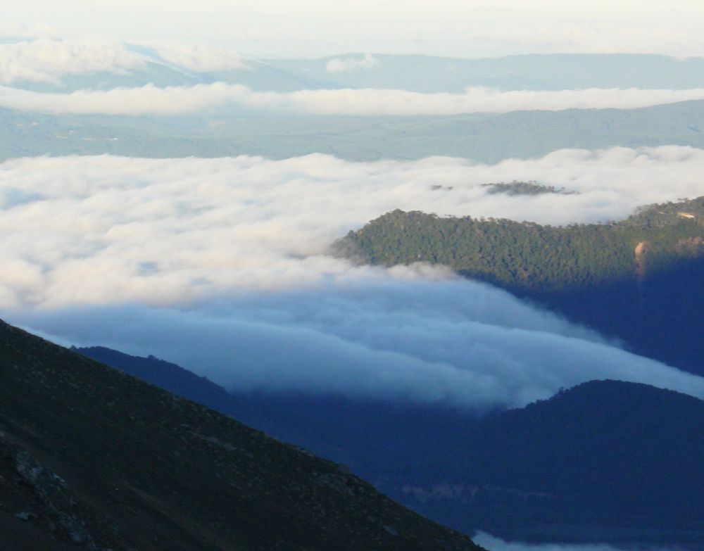 40 minutes se sont écoulées et nous arrivons à la platerforme du téléphérique. Daniel est super content et nous gratifie d'un : "Super les gars, vous avez un bon rythme, si on prend que 5 minutes de pause on va pouvoir rattraper les autres.. Moi pendant presque trois-quart d'heure je me suis maudit tout seul à chaque fois que je voyais quelqu'un passer au dessus de ma tête tranquille, sur son télésiège.. Alors effectivement, les premières minutes j'ai vraiment souffert, mais une fois le premier souffle passé et les muscles rodés, c'est comme monter rapidement un escalier un peu raide. Sauf que là l'escalier va durer plusieurs heures.. Le soleil commence à se lever, et la première récompense ne se fait pas attendre :
