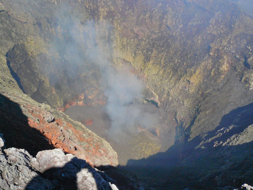 Enfin le sommet!! On ne peut y rester que dix minutes à cause des vapeurs du volcan, c'est impossible de décrire je que je voie avec des mots, ni même ce que je ressens. La joie est immense comme à chaque fois que je réalise un de mes rêves. Daniel le guide est également très satisfait, d'avoir pu grimper aussi vite avec des débutants. Il nous disait que, pour lui, ces excursions c'est comme si un pilote de rallye se retrouvait dans une auto-école. Trève de bavardages et place aux photos: